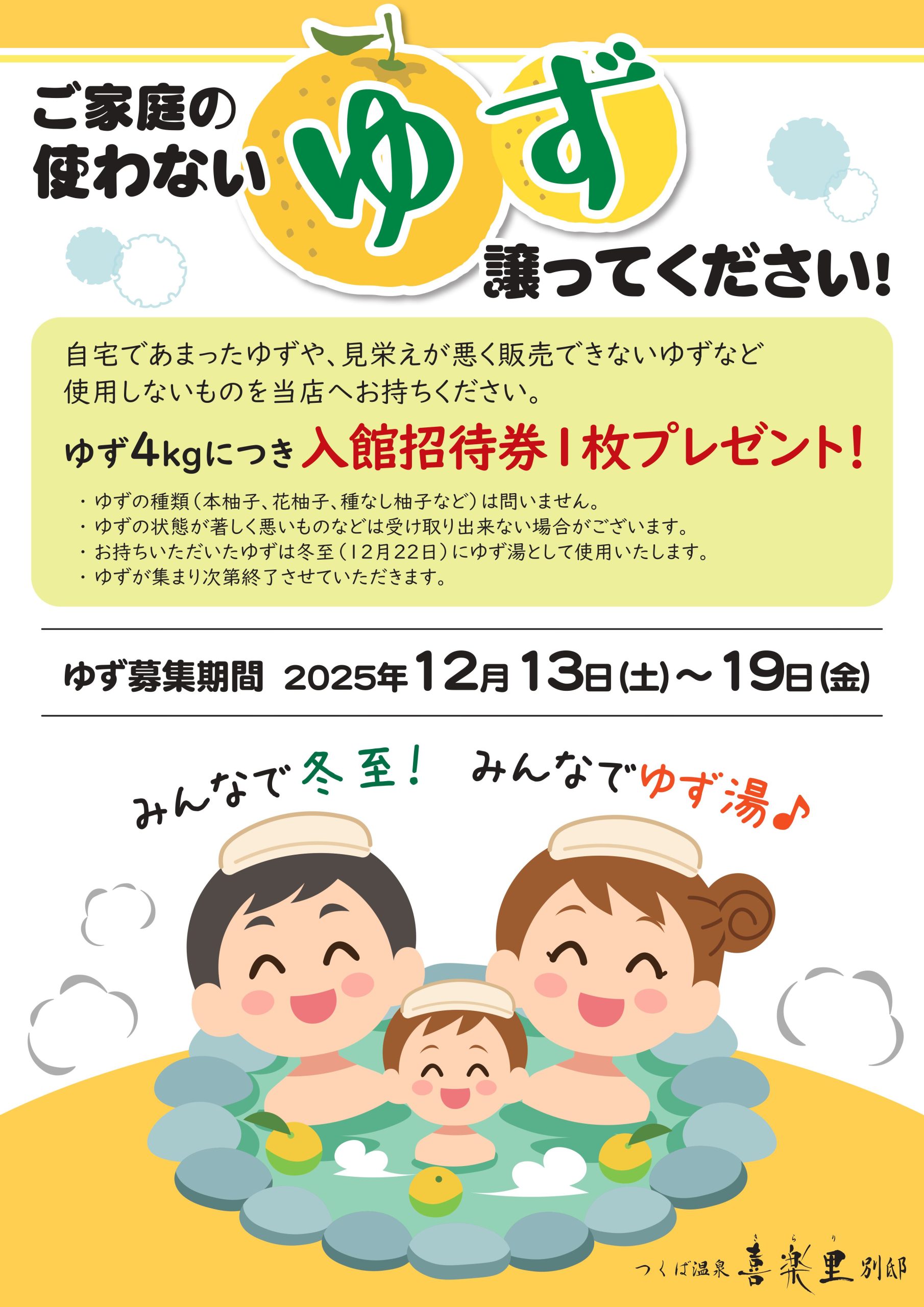 12月22日(月)《冬至》 ゆず湯 開催のご案内
