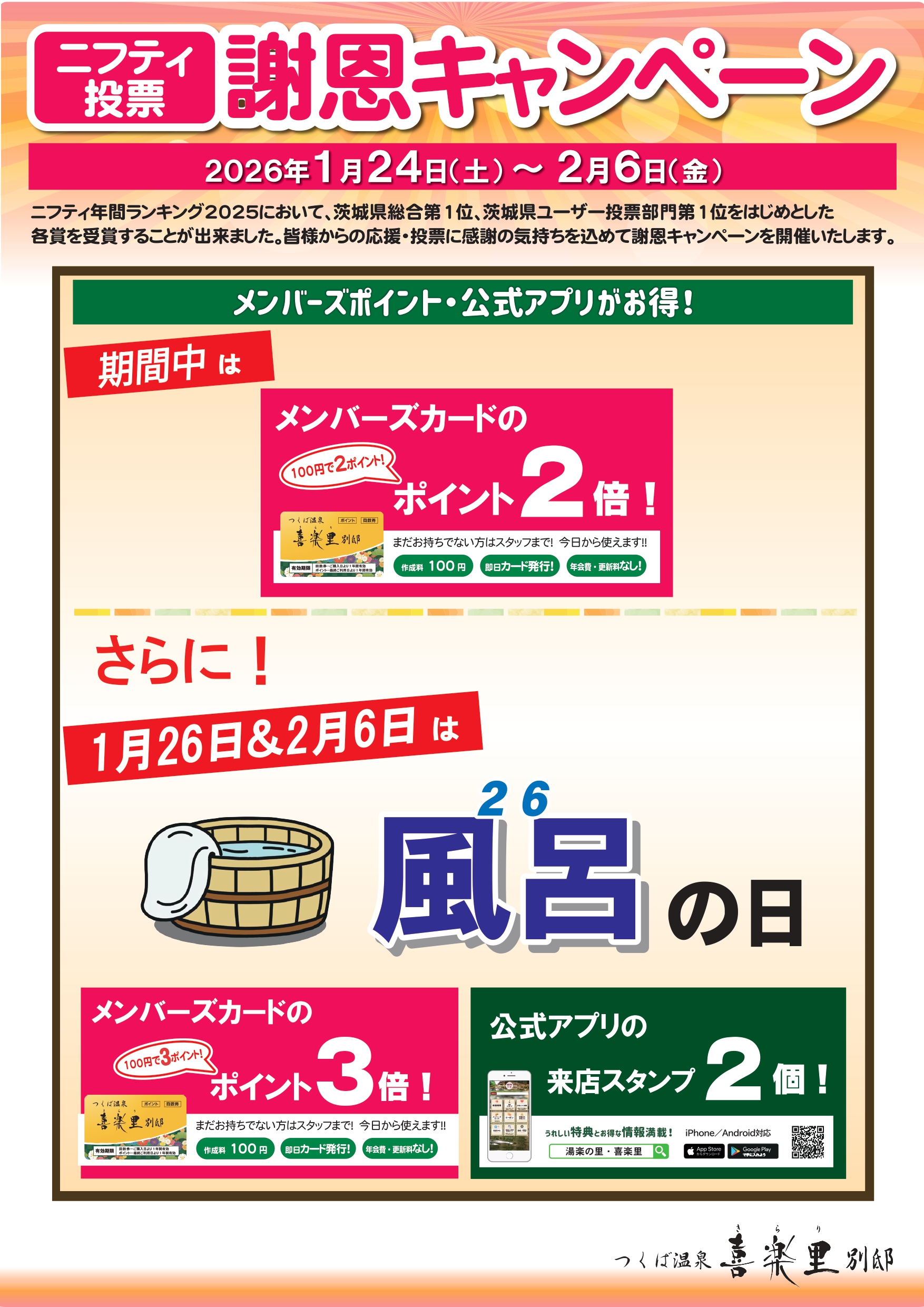 湯楽の里・喜楽里 公式アプリ会員募集中!